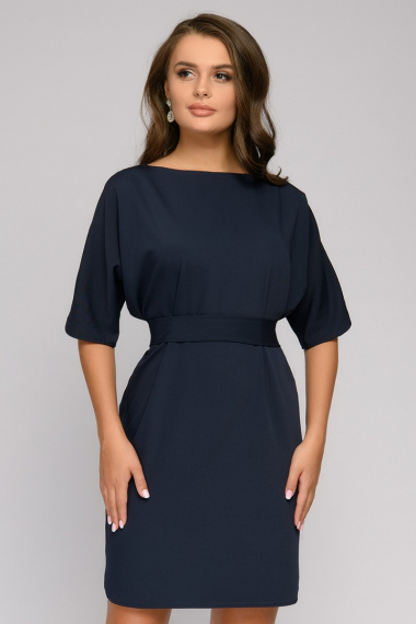 Платье темно-синее с поясом и рукавом "летучая мышь" 1001 DRESS